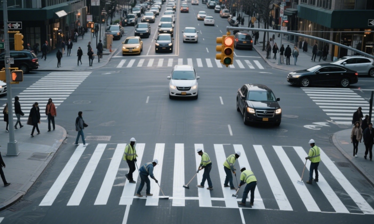 Industrial Areas: Dark Gray + Yellow Warning Line (Wear-Resistant and Safety Signage)